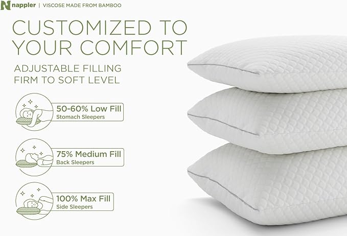- ✅ EXPERIENCE THE ULTIMATE IN SLEEP LUXURY WITH NAPPLER, a leading US brand, offering luxury shredded memory foam pillows. Tailor your comfort with the adjustable gel pillow, providing personalized support to your head, neck, and shoulders. Immerse yourself in cloud-like slumber with the Luxury Cooling Pillow, crafted from premium for an ultra-soft touch. Nappler, the epitome of innovation and comfort in one exquisite collection.