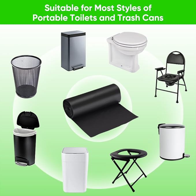 - 【Easy to Storage Portable Potty Bags】- Avoid excessive heat of camping potty bags, these portable toilet bags are for buckets in cool storage, dry places. The toilet replacement bags can also double as trash bags and support outdoor travel to tackle everyday demands. Toss camping poop bags into your camping backpack, save a roll in your glove compartment or throw a roll into your toilet.