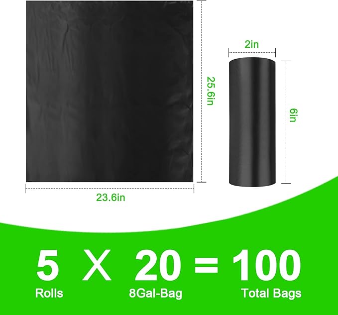 - 【100 Biodegradable Portable Toilet Bags 】- Biodegradable toilet bags included 100 biodegradable portable toilet replacement bags, which come in 5 rolls of 20 each for a total of 100. These portable toilet bags for adults are 8-gallon size, expanded size measures 23in x 26in, enough for your outdoor use. Black trash bags are opaque, so they are perfect for Kitchen, Bathroom, Living room, Office, School, Yard, Car, Boat, Camping, and Hiking. The trash bags will handle the waste perfectly.