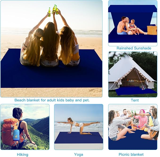 - 🏖️Beach Blanket Soft and Durable:78'' x 81''Oversized,1-5 Adults in total.Made by parachute fabric nylon. Very light and small after folding. Easy to carry, better professional fabric sewing and good wear resistance.