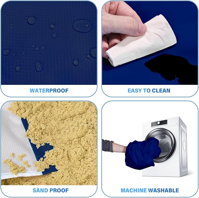 - 🌐Sandproof Beach Mat Blanket:Effectively water and sand resistant. You just need to shake it gently that sand won't stick to the mat. Keep the blanket clean all the times. Washed by washing machine or hand.