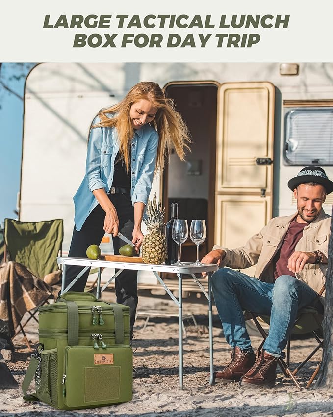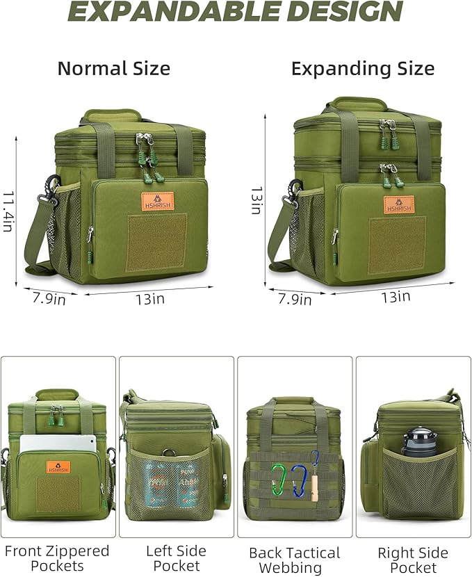 Expandable XLarge Tactical Lunch Box for Adults, Waterproof Insulated Lunch Bag with Lots of Storage Space, Durable Lunch Pail for Men Women Work Outdoor Picnic Trips, 22L(Army Green), HSHRISH