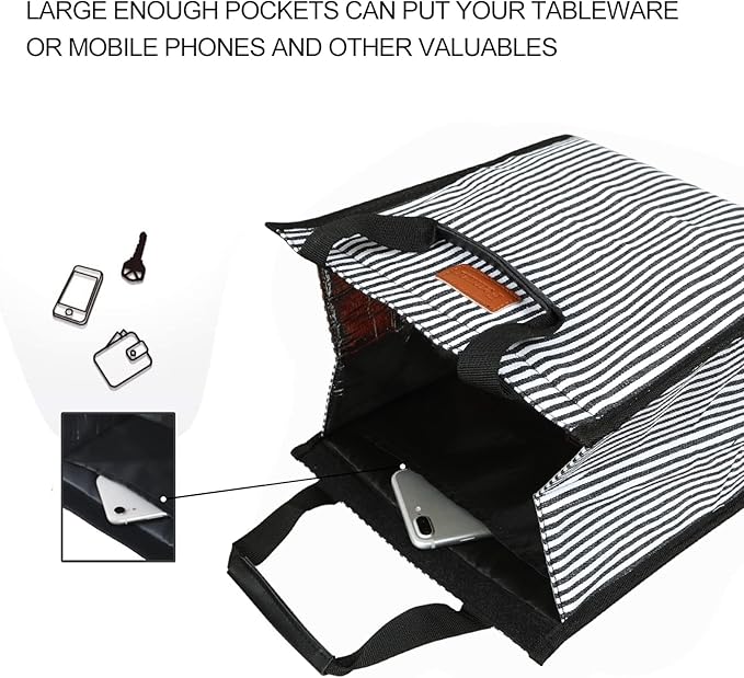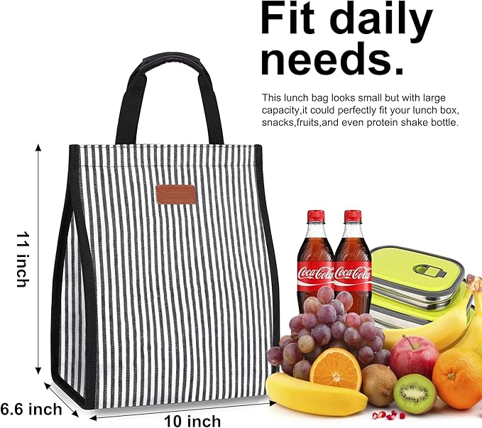 Lunch Bags for Women Insulated Reusable Lunch Tote with Internal Pocket, Lunch Tote bag for Work (Stripe)