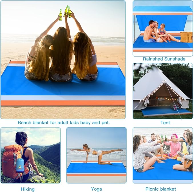 - 🏕️Beach Blanket Oversized:Good tear resistance,dry quickly. Can also be used as a rain shed,sunshade,tent,toddler crawl,emergency mat. Feel comfortable to lying down. Won't irritate your skin,better professional fabric sewing.