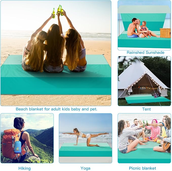 - 🏕️Beach Blanket Oversized:Good wear resistance,Dry-Quick.Can also be used as a rain shed,sunshade,tent,toddler crawl,emergency mat. Feel comfortable lying down,Won't irritate your skin,Better professional fabric sewing.