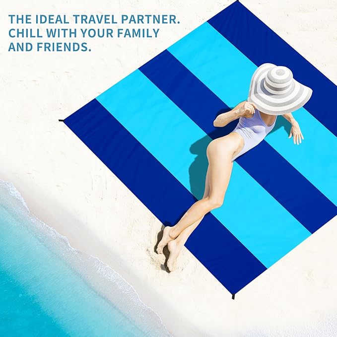 - ⛱ Beach Blanket Oversized:Tear-resistance,dry quick.Also can be used as a rain shed,sunshade,tent,toddler crawl,emergency mat etc.Feel comfortable to lying down.Won't irritate your skin and fine stitches.