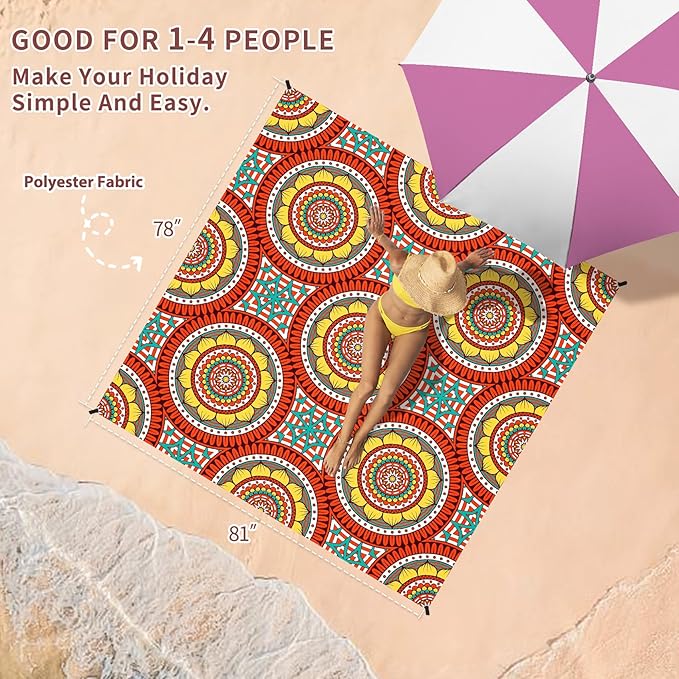 BYDOLL Beach Blanket Waterproof Sandproof 78''×81'' 1-4 Adults Waterproof Sandproof Oversized Lightweight Beach Blanket Large Picnic Mat Beach Blanket for Beach Travel Camping