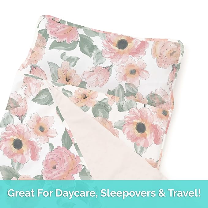 JumpOff Jo - Toddler Nap Mat - Sleeping Bag for Kids with Removable Pillow and Ultra Soft Blanket for Preschool, Daycare, and Sleepovers - Floral Watercolor