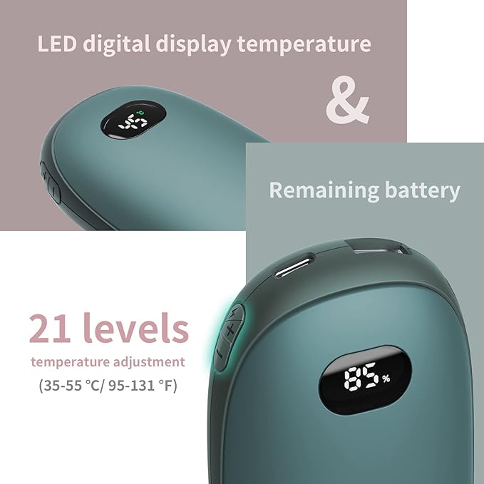 Unigear Electric Hand Warmers Rechargeable, 10000mAh Portable USB Hand Warmer & Power Bank with 21 Heating Levels and Quick Charge, 1 Second Fast Heat up, Great for Raynauds, Outdoor Sports, Camping