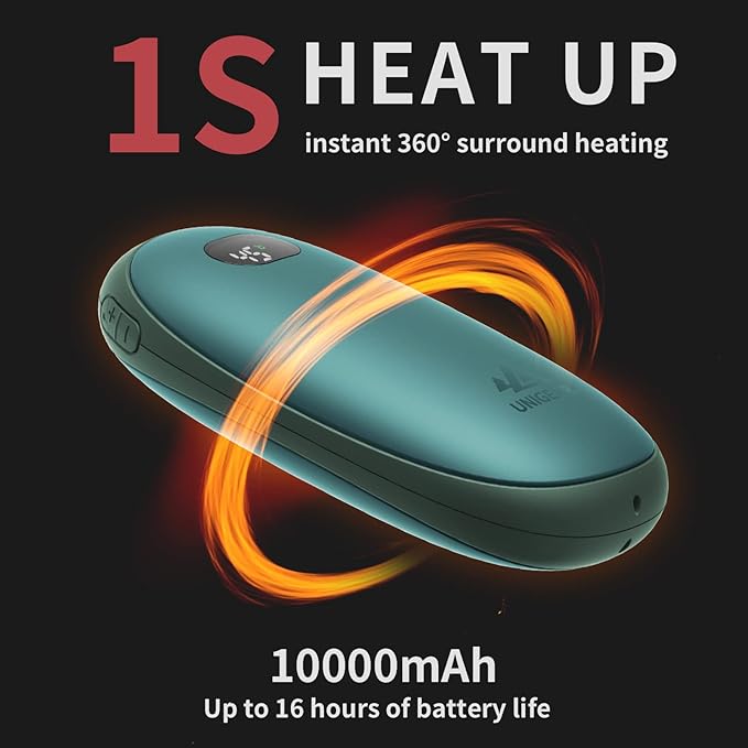 - Instant Heating. The rechargeable hand warmer with 10,000mah capacity provides up to 16 hours of battery life, Taking only 1 second for a 360 degree all-round heating. giving you a full day of continuous warmth during the cold weather.