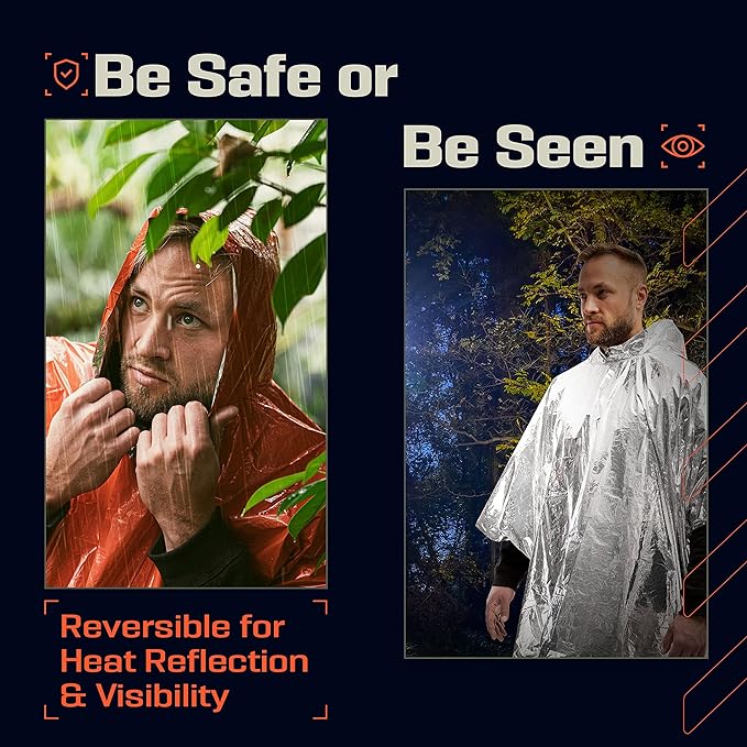 - WILL NOT FAIL YOU – Its versatile design gives you a poncho and thermal blanket in one, making it ideal for your survival kit, survival gear, hiking gear, earthquake kit, bug out bag, or car emergency kit, so you’re always prepared, no matter what life throws your way.