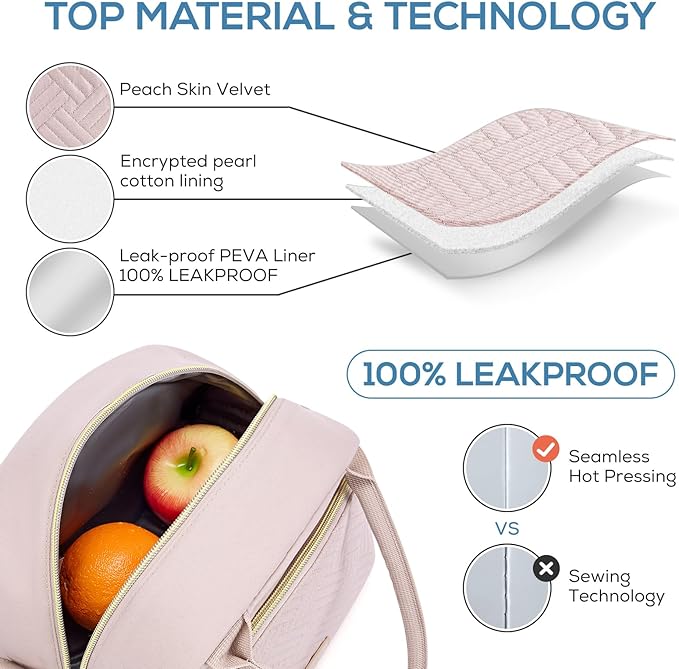 - 【Leakproof & Easy To Clean】: Womens lunch bag applies high-density insulation material to prevent leakage, even if you accidentally spill a drink in the liner, you do not have to worry about food leakage. Stains on the liner can be wiped with a paper towel, which greatly saves your time.