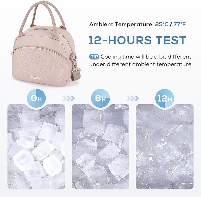 - 【Insulated & Cooler】:Lunch bag women made from food-grade PEVA material, you can rest assured that you can store and preserve fruits and foods there. The middle layer of 5mm encrypted pearl cotton can better maintain the food temperature. The ice bag can keep cold for 12 hours at a temperature of 26 degrees.