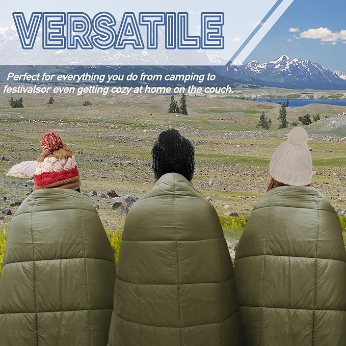 - 5.Shawl & Cover Foot: The one-person blanket is wearable! You can wear this puffy blanket when you are cooking foods, or drinking beer all while staying warm. When drinking coffee with your family in the garden, you can cover this puffy blanket to keep warm in the morning.