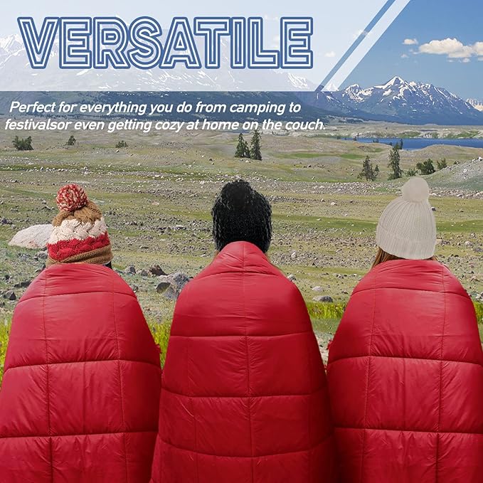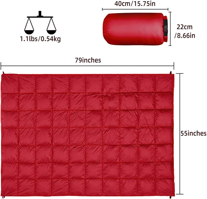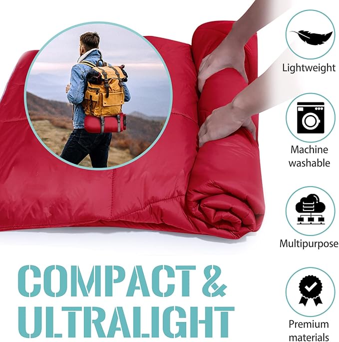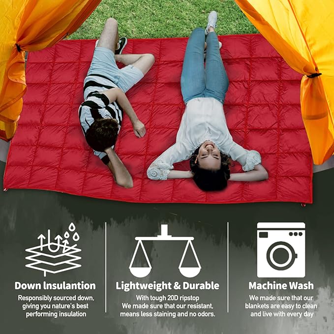 Outdoor Puffy Camping Blanket, Lightweight Down Alternative Puffy Printed Camping Large Ultra Warm Hammock Top Quilt Waterproof Blanket for Traveling Picnic Beach Party Cold Weather (Red)