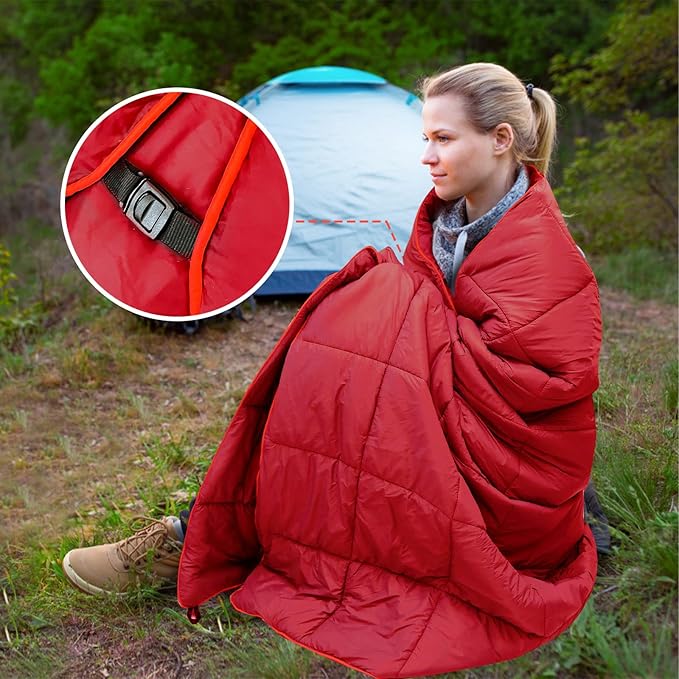 - 5.Shawl & Cover Foot: The one-person blanket is wearable! You can wear this puffy blanket when you are cooking foods, or drinking beer all while staying warm. When drinking coffee with your family in the garden, you can cover this puffy blanket to keep warm in the morning.