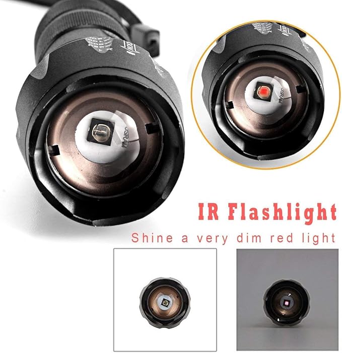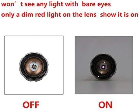 - 850nm infrared light wavelength: This infrared flashlight emits invisible but high-power 850nm infrared light, which is clearer than ordinary infrared light sources, you can't see infrared light without night vision, when the infrared flashlight is on, you can only see to the faint red light above it.