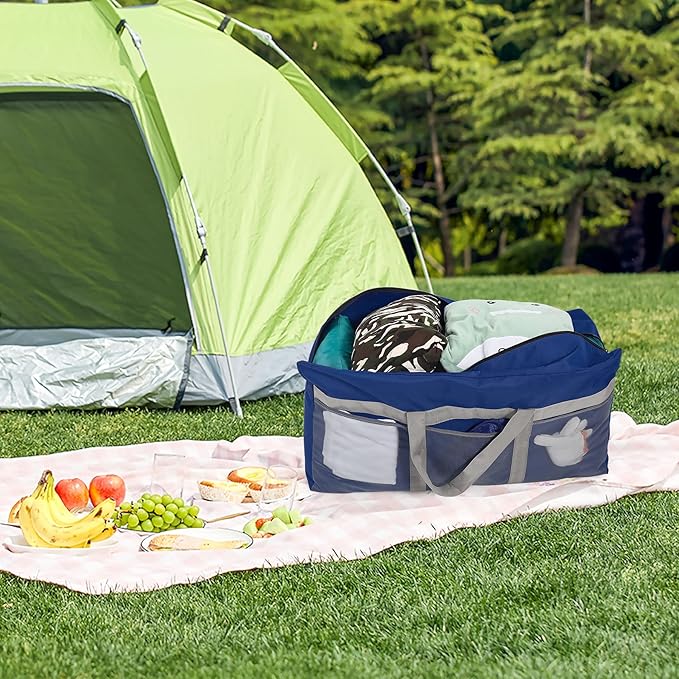 - [Practical Pockets]: The REDCAMP large duffel bag is equipped with 3 outside pockets with 3 open mesh pockets on the side. It also has an interior pocket that the duffel bag folds into when not in use.