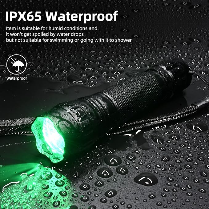 - 【SUPER BRIGHT HUNTING ILLUMINATOR】-- This greenlight flashlight is very helpful for finding wild boar, coyotes, foxes, snakes and etc in the dark. Great for dusk and dawn in the woods or admiring the night sky. Also amazing for assisting with astronomy, aviation, night walks, paranormal investigations, turtle patrol duties, rescue outdoors, PC submarine game, military tactical, emergency car use and etc.