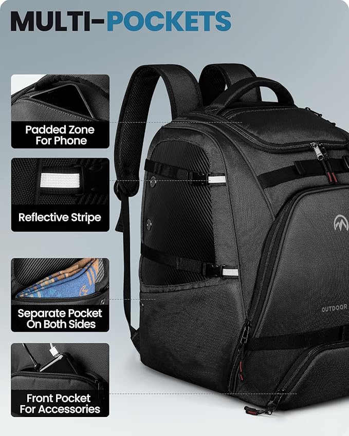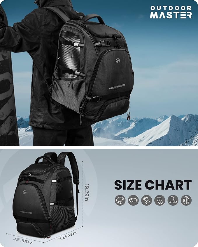 OutdoorMaster Ski Boot Bag, 50L Waterproof Snowboard Bag for Air Travel, Travel Boot Backpack for Ski Helmet, Goggles-Black