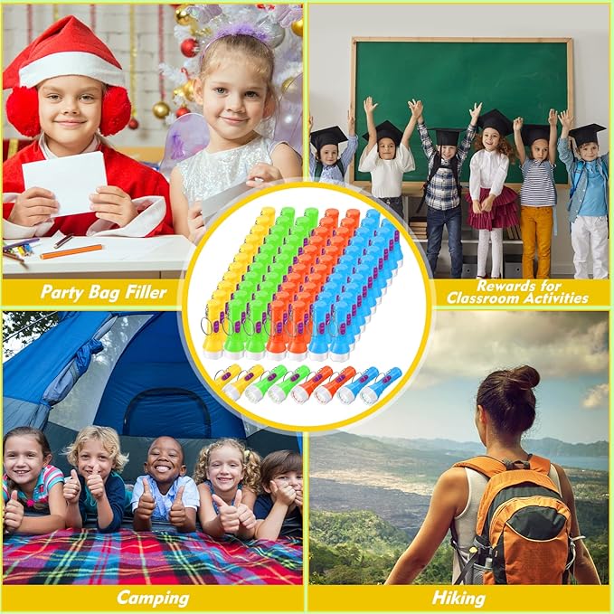 - Ample Mini Flashlights for Kids: the package contains 96 pieces of mini flashlights in 4 different colors, including red, blue, yellow and green, 24 pieces per color, ample quantity and diverse colors to meet your various needs