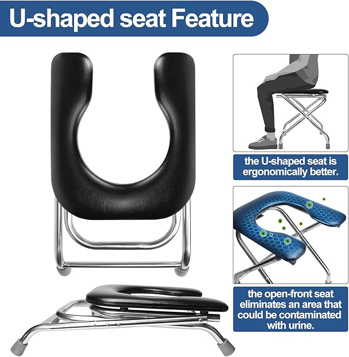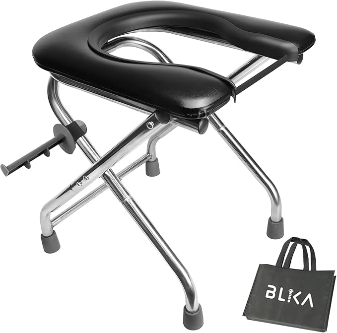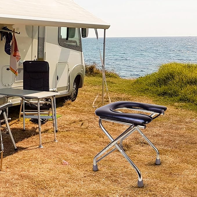 BLIKA U Shaped 350 LBS Portable Toilet for Camping, Portable Folding Toilet, Stainless Steel Portable Toilet with Soft Seat, Portable Toilet for Adult, Outdoor Camp Toilet