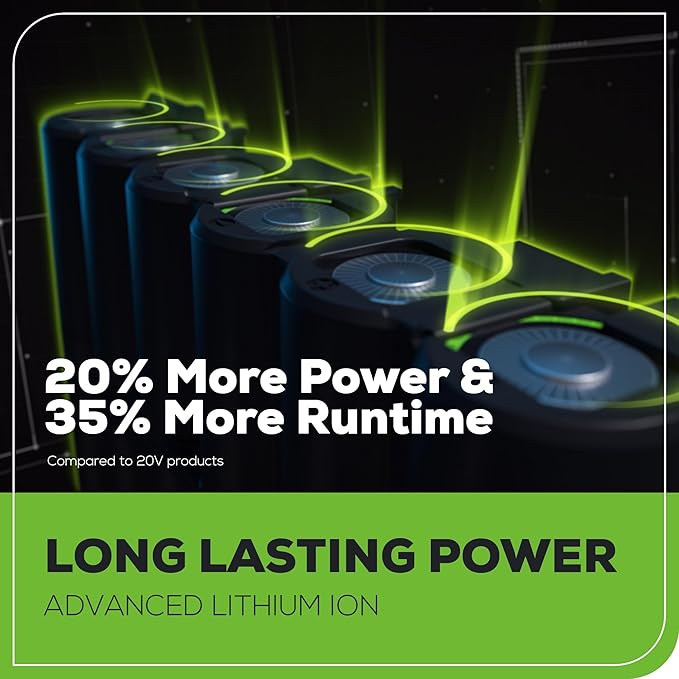 - 【Greenworks 24V Lithium-Ion Battery】Provides 20% more power and 35% more run-time, and delivers fade-free power with no memory loss after charging.