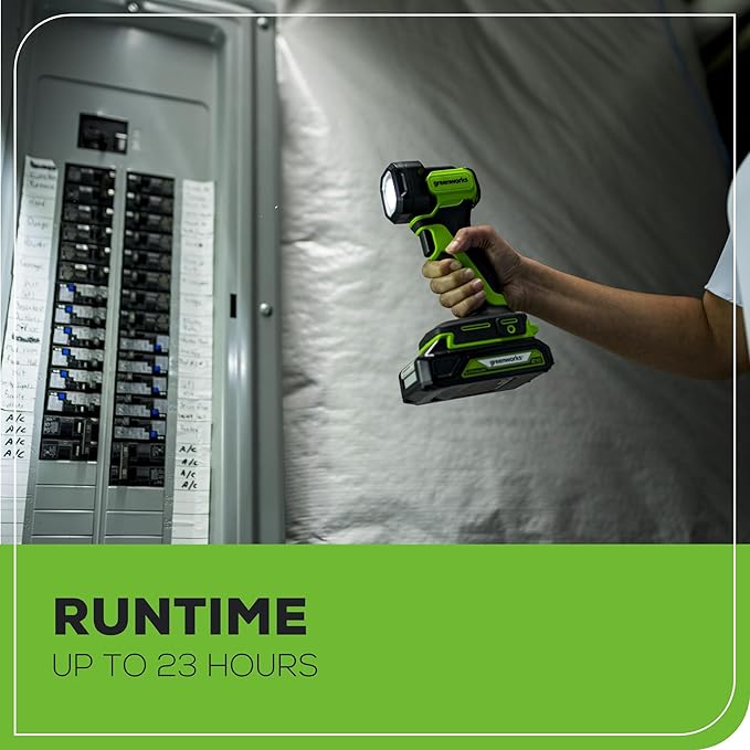 Greenworks 24V Cordless LED Flashlight Kit, 200lm Handheld Light, 2Ah Battery and Charger Included