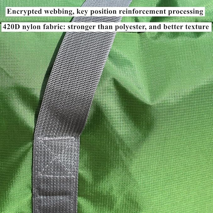 - Materials: 420D high quality nylon fabric(Not polyester), light, strong,waterproof,easy to fold and carry,Note: This is nylon, so stay away from the fire