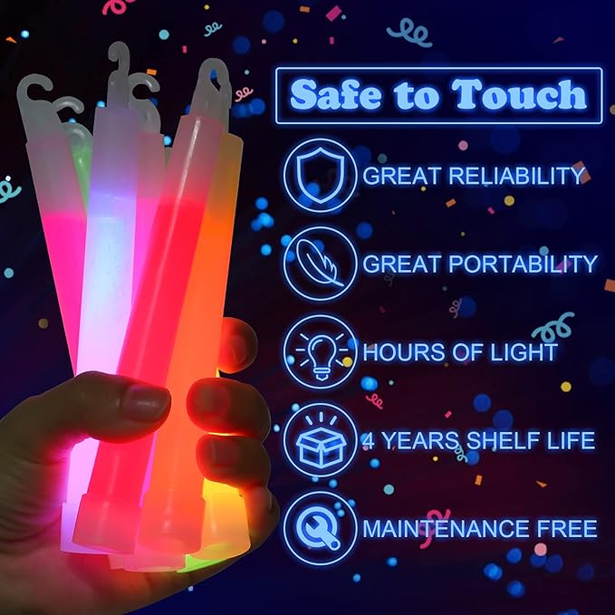 - 💡Lasting Glow for 10-12 Hours: These glow sticks are under strict quality control and can continue to illuminate your space for at least 10 hours after activation. This Glow Stick party gift is perfect for decorating your glow party, or lighting up the night any time there is a power outage and the option of lights is not available.