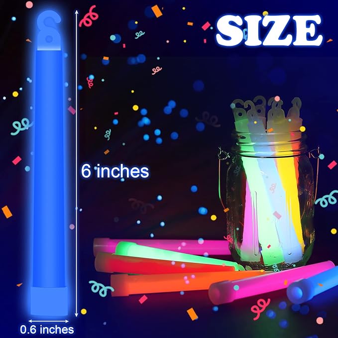 - 💡25 Glow Sticks Bulk Pack: Package contains 25 6-inch super bright glow sticks with red ribbons. Eight vibrant colors including green, yellow, blue, red, white, orange, pink, and purple will brighten up your glowing party.