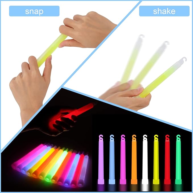• 💡Great for Party: This super bright glow stick has many different uses, it's perfect for Halloween decorations, trick-or-treating kits, party favors, carnivals, and more, and a great addition to all emergencies, power outages, survival kits, camping A must have.