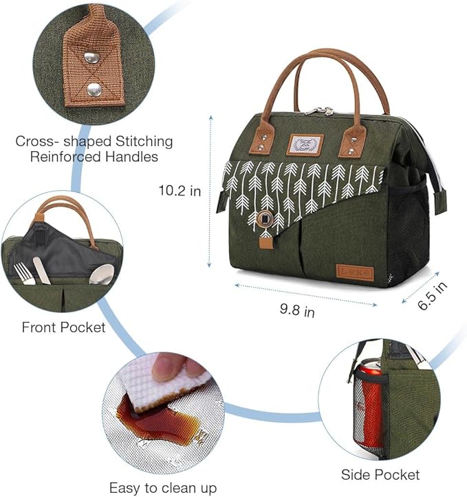 Lekesky Insulated Lunch Bag Portable Lunch Box for Office Work Picnic Beach Workout Reusable Tote Lunch Bag Organizer for Women Adult, Green