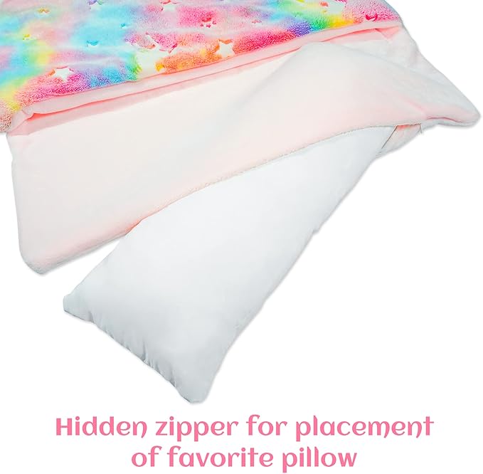 - PERFECT GIFT FOR KIDS-This light-up sleeping bag is the perfect gift for kids. Toddler sleeping bag is not only warm, soft, and comfortable, but it also has fun glowing features that kids will love. Your kid can take this sleeping bag to day care, preschool, kindergarten, grandma's house with a portable sling bag.