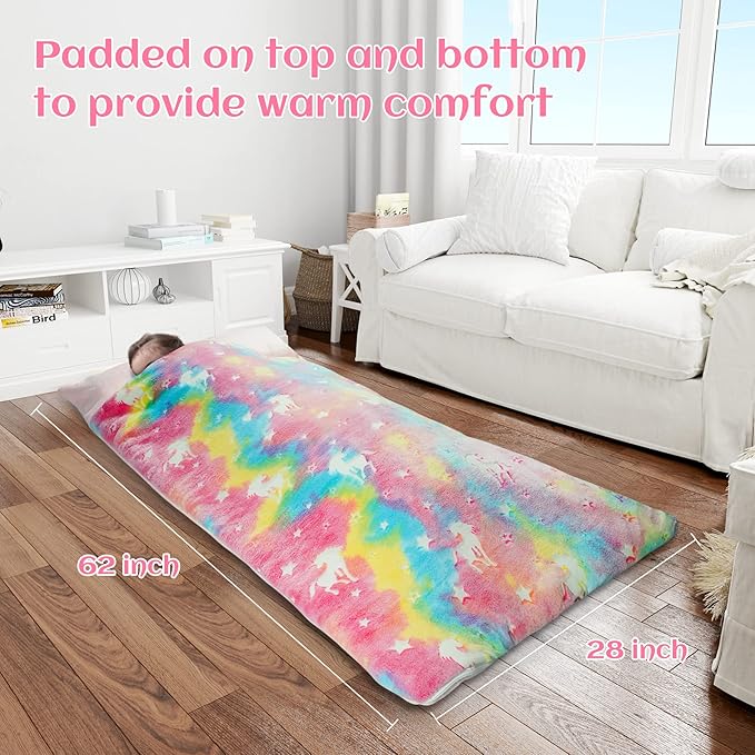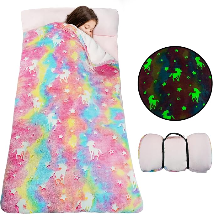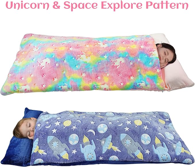 Sleeping Bag for Kids Glow in The Dark Slumber Bag for Girls and Boys Toddler Nap Mats, 62" x 28" Soft and Comfortable for Sleepover, Daycare, Preschool, Kindergarten