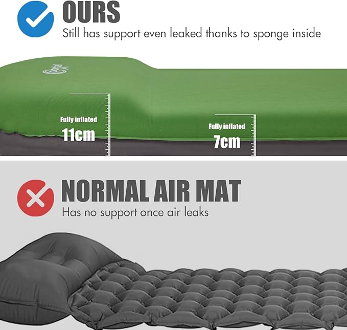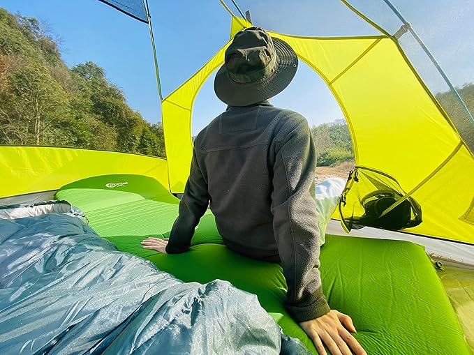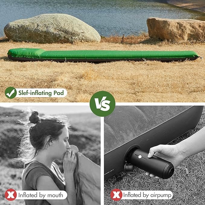 - Handy Self-inflating Sleeping Pad: No breath, no pump, just wait it self inflating. Unlike others', our camping pad features two valves - an inflation valve and a deflation valve - for easy and quick inflation and deflation. You don't have to struggle with inflating air when rolling up since one valve do both inflation and deflation.