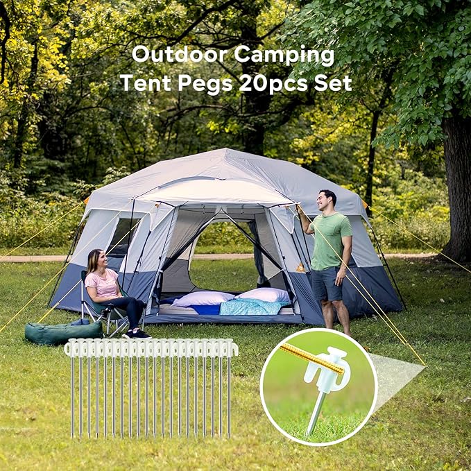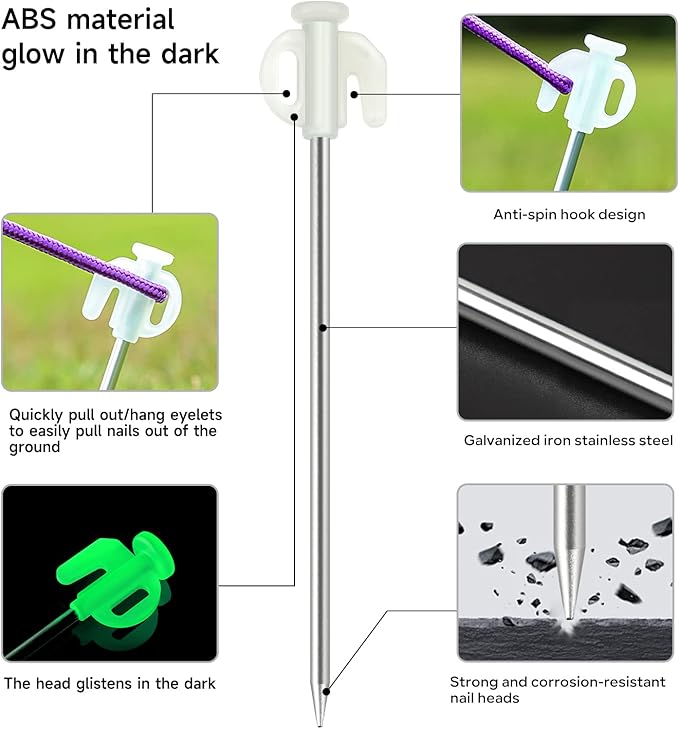 - 【Applicable】Perfect for nailing large tents, canopies, tarpaulins, etc to the ground when outdoor camping and picnicking, suitable for most rough terrain, such as rocky ground, snowy ground, grassland, hard ground, asphalt, desert field and so on.