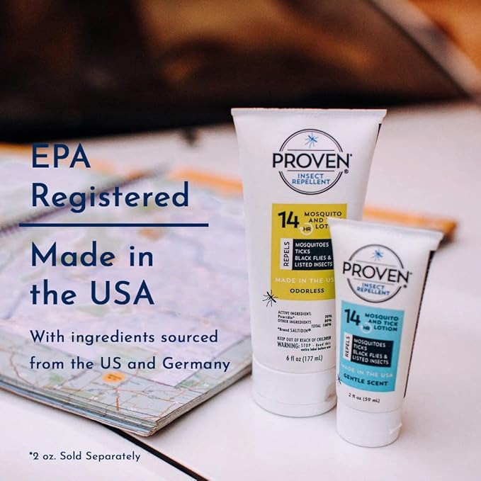 Proven Insect Repellent Lotion - Keep Mosquitoes, Ticks and Flies Off, DEET Alternative Repellent, Up to 14-Hour Protection, Great for Outdoor Camping and Hiking, 6 oz, Odorless Lotion, 2 Pack