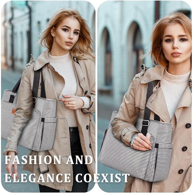 Large Women Lunch Bags/Insulated Adult Lunch Box/Leakproof Cooler Lunch Tote Bag with Storage Pocket. Reusable Lunch Purse for Work Picnic Hiking 12L, Stripe