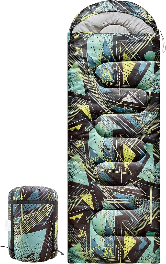- 【4-Season Comfort & Unique Design】Our sleeping bag is perfect for adults and youth with a spacious XL envelope design measuring 30.7" x 86.6", fitting up to 6'2". It's suitable for cold weather, winter, and zero degree temperatures (0°F), featuring a unique Geometric Grunge Camouflage pattern that adds style to your outdoor adventure