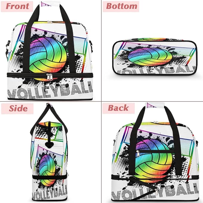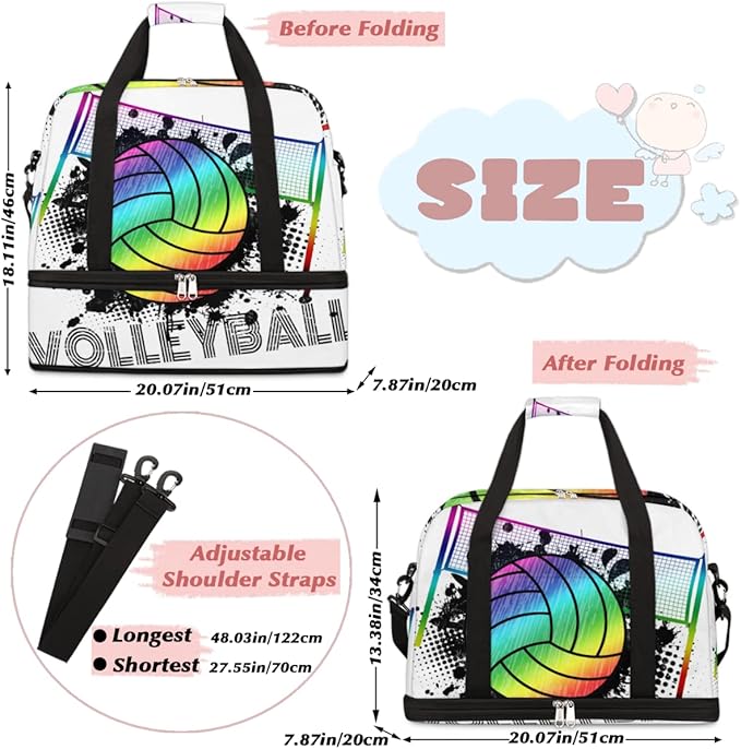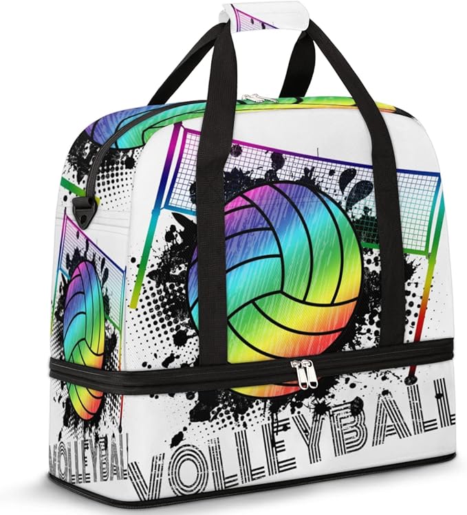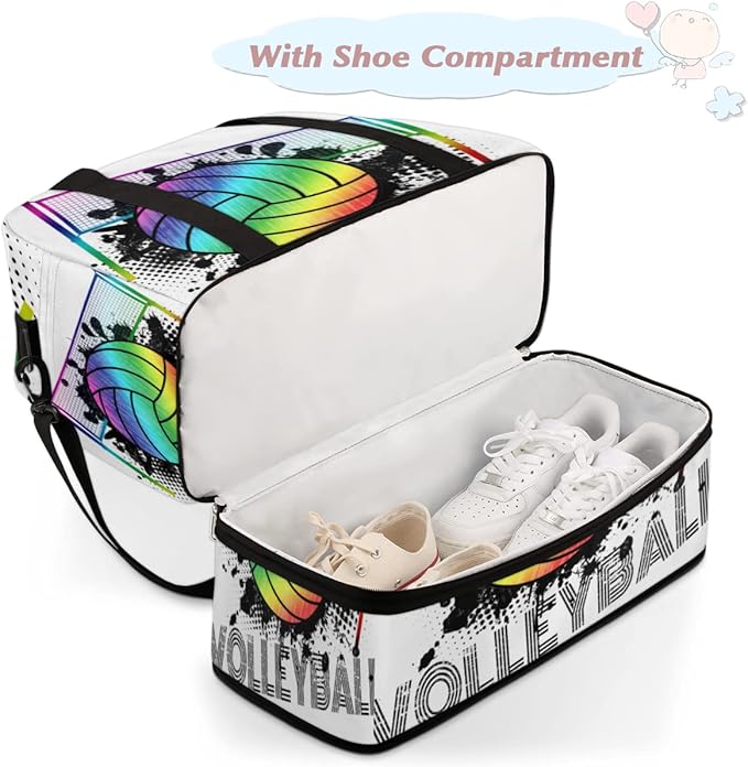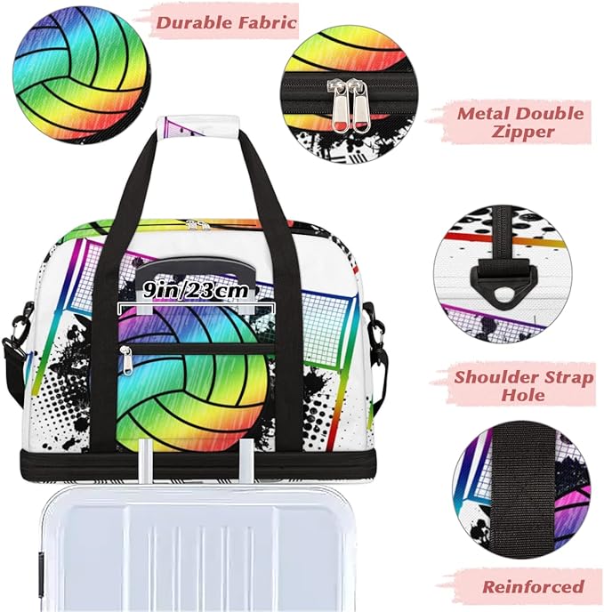 Sports Gym Bag, Volleyball Sport Ball Travel Duffel Bag with Shoes Compartment Waterproof Overnight Bag Workout Weekender Bag Boys Girls Yoga Dance Bag Gym Tote Bag for Women Men