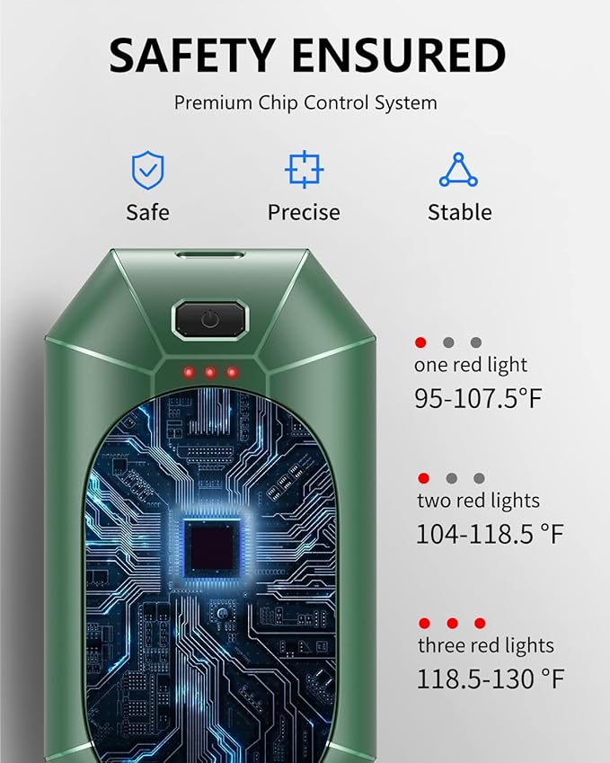 - 【Stable Instant Heat】No more longtime wait, electric hand warmers using the premium chip control system. Double-sided heat up to 131°F/55°C operating temperature with 1-second fast heating and 3 levels of temperature settings for adjustable and precise stable comfortable warmth.