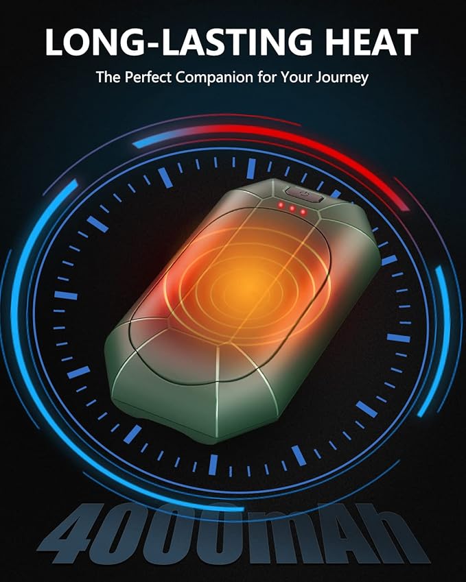 - 【Long Battery Life & Rechargeable】2 Packs 4000mAh hand warmer, a single full charge will last for 12 Hours, can meet the needs of one day's use. 3 levels indicator lights keep you informed of the remaining battery and heating status, Perfectly meet your different needs.