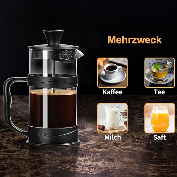 - 【Multiple Uses】This french press can be used as a coffee press, tea kettle or milk frother. Suitable for home office and outdoor activities, such as camping, family gatherings.