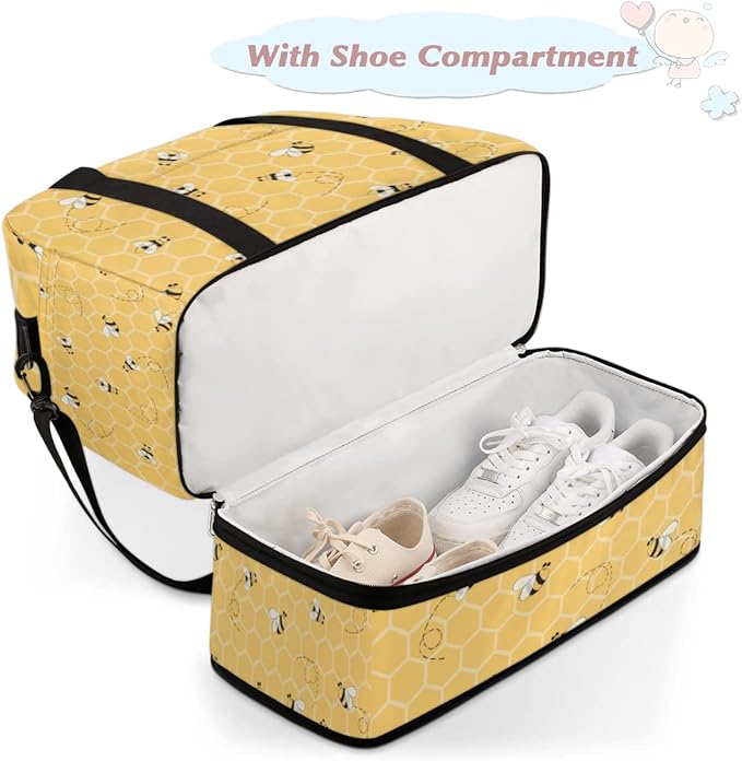 Sports Gym Duffel With Geometric Animal Bees Pattern - Travel Bag With Shoes Compartment, Waterproof Overnight, Workout Weekender for Boys Girls - Yoga Dance Tote for Women Men