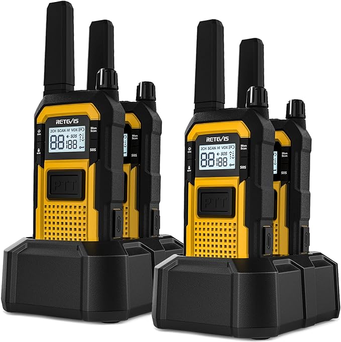 Retevis RB48 Heavy Duty Walkie Talkies, Waterproof Two Way Radio, Advanced Triple Proof, 2000 mAh, Emergency Alert, 2 Way Radio Long Range for Job Site (4 Pack) Yellow