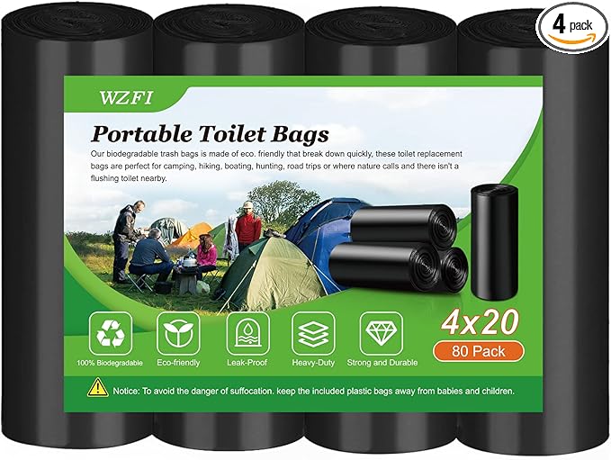 80 Portable Camping Toilet Bags,8 Gallon Super Thick Camping Toilet Bags Biodegradable Porta Potty Bags Leak-Proof Trash Bags for Adults Outdoor Boating Travel