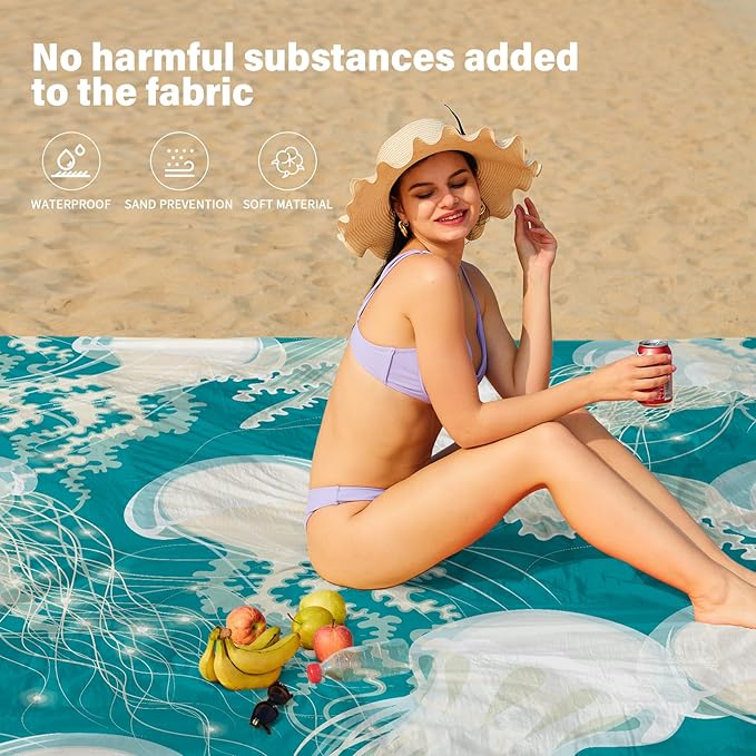 - Beach Blanket Waterproof Sandproof:Dry-Quick,Can also be used as a rain shed,sunshade,tent,toddler crawl,Emergency mat,Feel comfortable lying down.