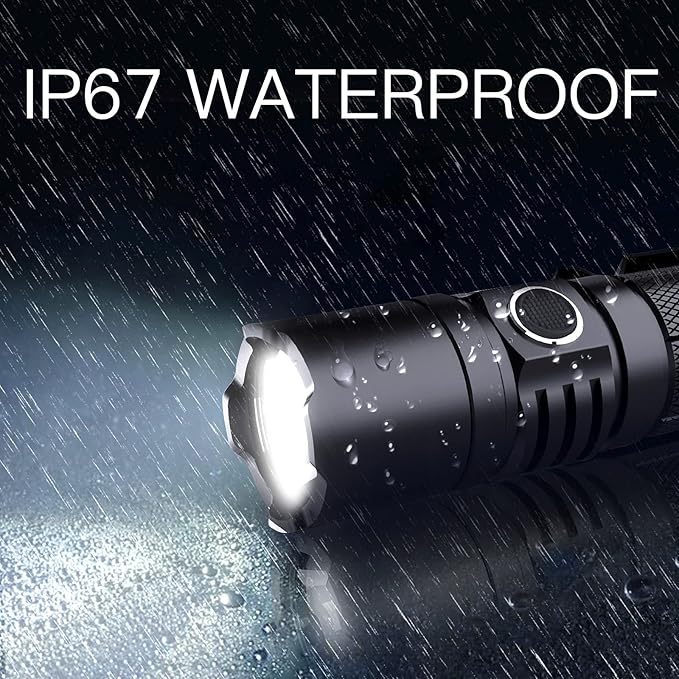 - 【WATERPROOF & SMART】IP65 rating of this Tactical Light Flashlight, best using for either indoor or outdoor application. Skid-proof, waterproof, explosion-proof and shockproof. Great for Camping, Hiking, Hunting, Night Vision, and Emergency. Easy to carry with you and small enough in your handbag, drawer, or car compartment.