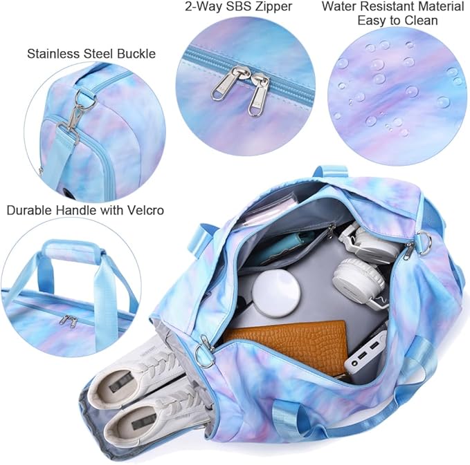 - Ideal Gift Dance Bag for Girls - Cute tie dye pattern,unique color, reinforced handheld, double smooth quality zipper. Could be used as carry-on weekender bag, cross body bag,travel bag, dance bag for girls. Perfect as birthday gift , Christmas Gift, New Year Gift for Girls or Teens.